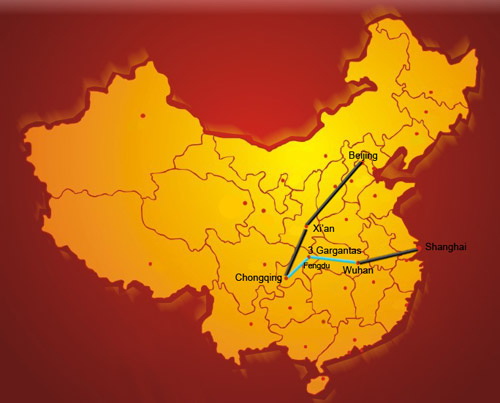 Suzhou 1 noche y Shanghai 2 noches. Visitando: Beijing 3 noches, Xian 2 noches, Chengdu 2 noches, Hangzhou 2 noches,